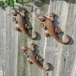 3 Wall Lizard Cast Iron Gecko Garden Ornaments Metal Decoration