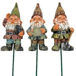 3 Garden Gnome On Sticks Garden Ornaments Pot Gnome Decorations