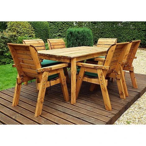 6 Seater Rectangular Table Set: The 6 Seater Rectangular Table Set is an ideal dining set for a family keen on dining alfresco. The 6 Seater Rectangular Table Set is made of Scandinavian Redwood which is a beautiful and durable wood resistant to decay and disease. It is fully treated for your peace of mind. The generously sized and sturdy seats come with a set of cushions in any one of three attractive colours. The set also includes a parasol with its base and a storage bag for the cushions. Gather your loved ones and share a pitcher of margaritas, finger food, dinner, or Sunday roast amid your lovely garden. No matter the moment, the 6 Seater Rectangular Table Set is sure to enhance your outdoor space with its traditional design and its rustic charm of natural wood.Please note that uses the White Glove bespoke delivery and assembly service.