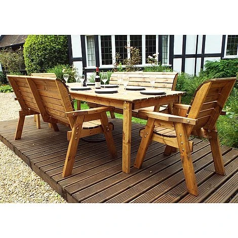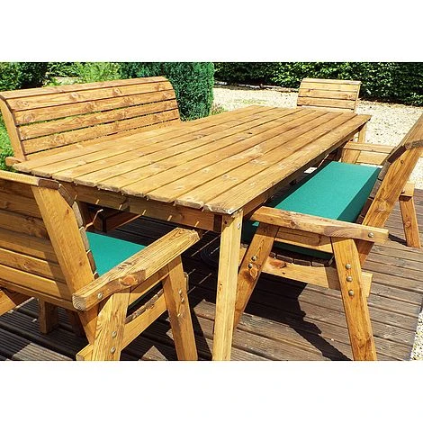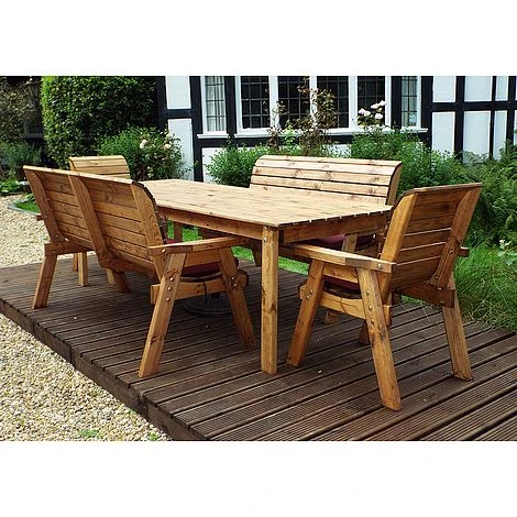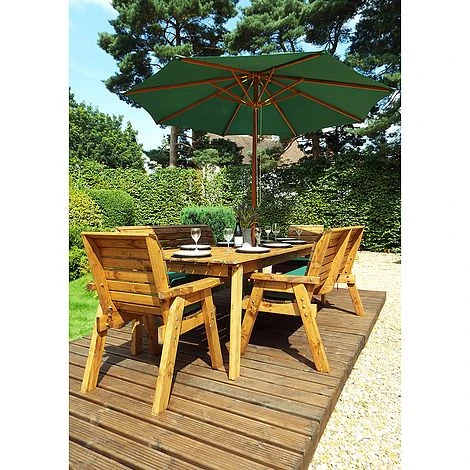 8 Seater Rectangular Table Set with Benches: The 8 Seater Rectangular Table Set with Benches is an ideal dining set for a family keen on dining alfresco. The 8 Seater Rectangular Table Set with Bench is made of Scandinavian Redwood which is a beautiful and durable wood resistant to decay and disease. It is fully treated for your peace of mind. The generously sized and sturdy seats of both chairs and benches come with a set of cushions in any one of three attractive colours. The set also includes a parasol with its base and a storage bag for the cushions. Gather your loved ones and share a pitcher of margaritas, dinner, or Sunday roast amid your lovely garden. No matter the moment, the 8 Seater Rectangular Table Set with Benches Set is sure to enhance your outdoor space with its traditional design and its rustic charm of natural wood. Please note that uses the White Glove bespoke delivery and assembly service.