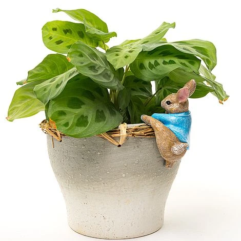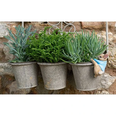 Our award-winning Colour Peter Rabbit Pot Buddy pot hanger has been custom designed and manufactured by Jardinopia, and is made from a durable poly resin and crushed stone based material. It is frost proof, UV resistant and hand-painted using lead-free products – meaning you can leave it outside all year around and the paintwork will not fade or flake in extreme temperatures and the product will not be adversely affected by frost. Peter Rabbit is an ideal gift for garden and animal lovers alike. Each Pot Buddy is beautifully gift packaged using 100% recycled (and onward recyclable) craft card materials. Our Beatrix Potter pot hangers are a licenced product have been produced in conjunction with Penguin Random House Books. They are based on the original Beatrix Potter watercolours produced between 1902 & 1930.