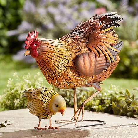 The ornaments are freestanding and can be easily moved around your garden to make an adorable feature of this mother hen and baby chick, anywhere you like.