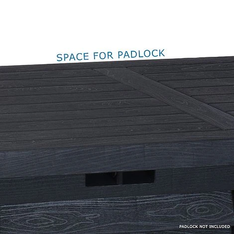 Standing at 58cm tall, 120cm wide and 52cm deep this anthracite grey storage box can hold 362L – which is a lot of 2L bottles of soda – while with a small enough base to be balcony storage! Including wheels to make moving it a breeze and made from hardwearing and heavy duty waterproof plastic, one of these outdoor storage containers will give you a lifetime of outdoor shoe storage and so much more. With a wood effect to the exterior, but with none of the wooden drawbacks, it’s a luxurious edition to compliment your deck design.