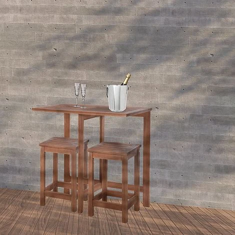 Why is this balcony table foldable? Because space is often at a premium, and we’re here to make sure every balcony, patio, conservatory, garden wooden gazebo, summer house, kitchen and more have room for one of these fantastic bar sets. Designed and constructed from FSC Certified 100% Acacia Wood, these foldable tables and garden stool sets have been oiled to a natural finish colour that look simply stunning and easily complements existing outdoor garden furniture design. But it’s use doesn’t stop at the patio door, it’s more than a garden furniture set It makes a kitchen bar table to give extra preparation room while cooking and a dining table bistro set for even small studio apartments and mini spaces.