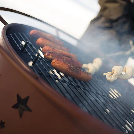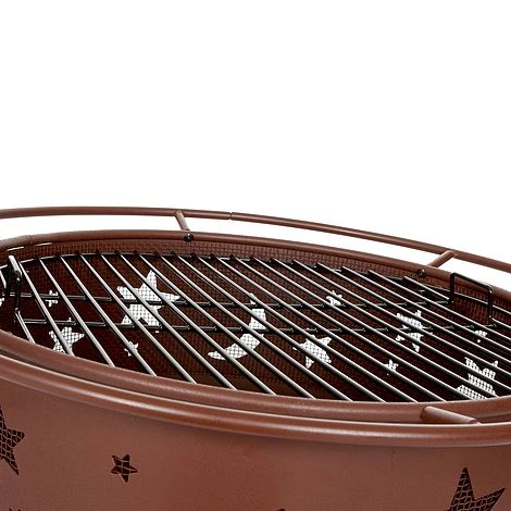 Landmann Moon and Stars Firepit: The Landmann moon and stars firepit is an attractive central feature for the garden. This firepit can be used for outdoor heating and also for outdoor cooking as it includes a full size enamel cooking grill. This firepit has a Georgia Clay coloured finish and has moon and star cut outs around the bowl to give a 360-degree view of the fire. This fire pit comes complete with a spark screen to minimise spitting from the fire and also a poker to help keep the fire alight. The Landmann moon and stars is suitable for larger fires with its generous 60cm diameter bowl. Enjoy entertaining guests even on cooler evenings with this impressive outdoor firepit