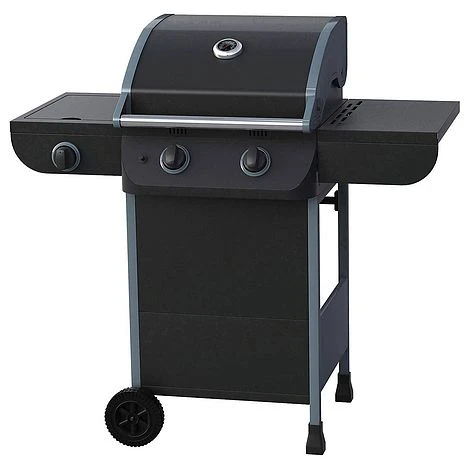 Perfect for family barbecues this compact gas BBQ is ideal for smaller sized gardens. With two burners and a side burner it can cook up to 20 burgers at a time and is great for cooking side dishes in a frying pan or saucepan. It comes with 2 wheels allowing it to be easily moved around your garden. Includes hose and regulator for a quick start to cooking. This item is mainly made of steel.