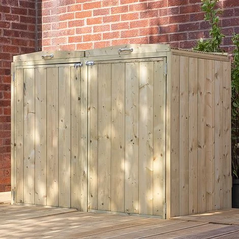 Both compartments have single doors for easy access and movement of your bins, great for accessing and storing away. Covered by a hinged lid, which once attached to the lid of the bin, will open automatically, creating an easy and clean way to throw away your waste.This wooden bin store also features a bolt lock on each door to keep your bins secure.